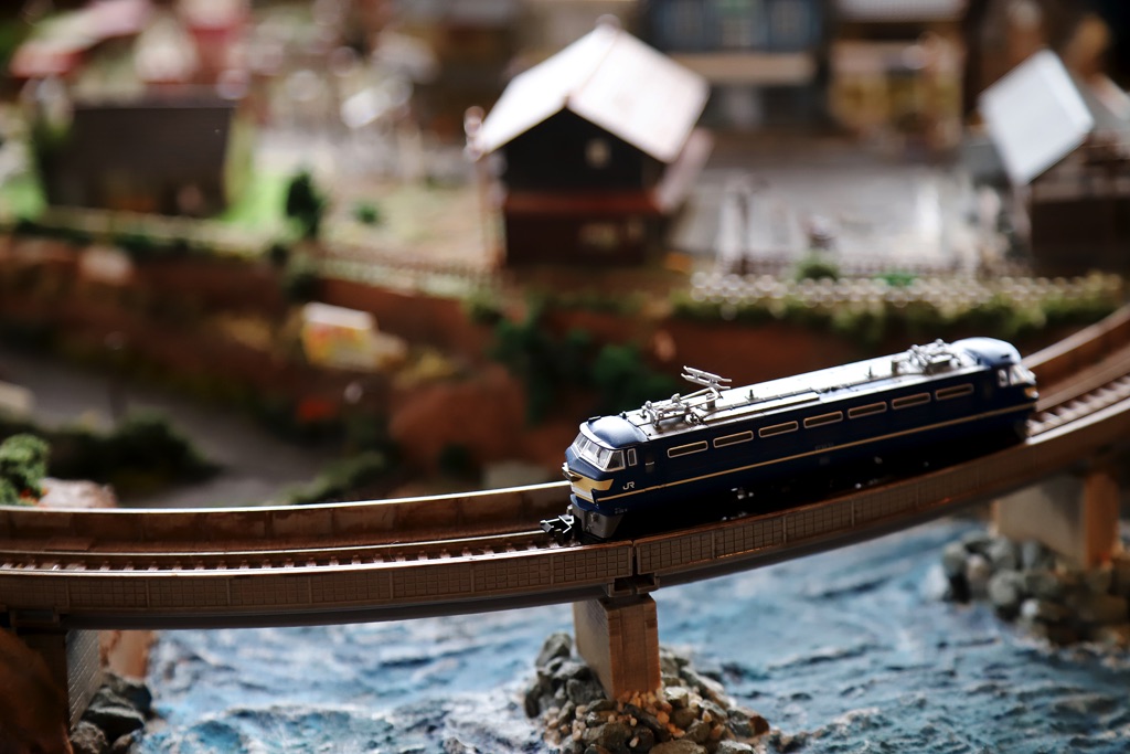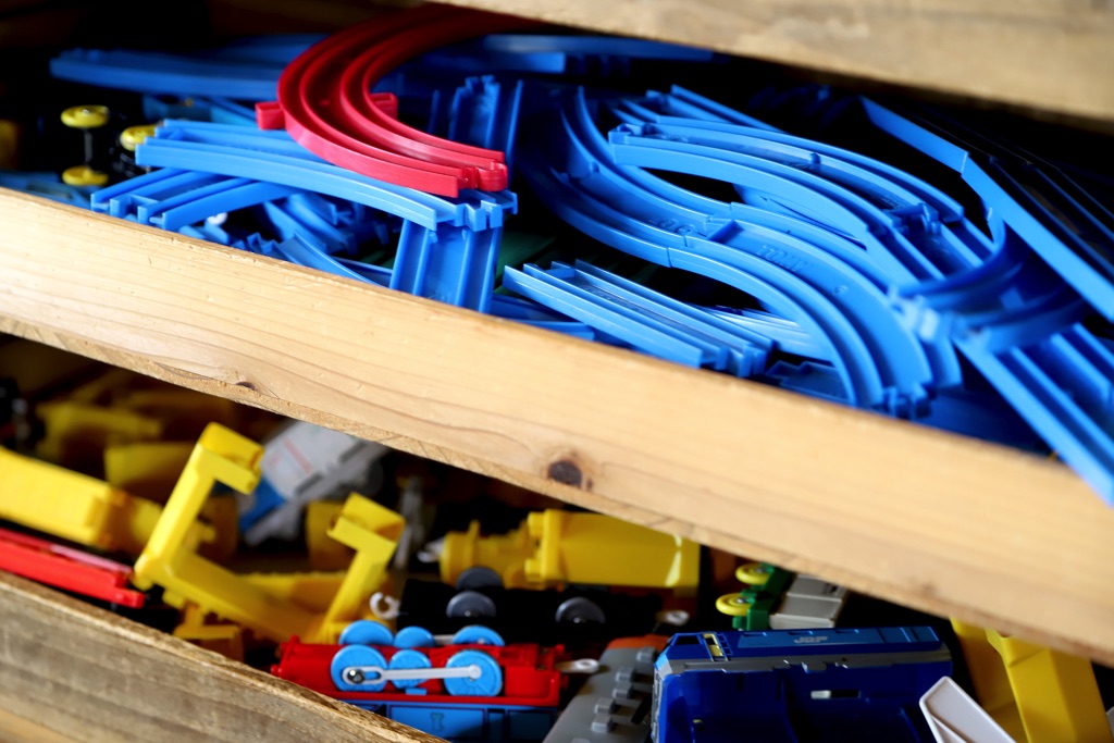 シミュレーターやボルダリングはまだ早い未就学児向けには、プラレールやジオラマも。
