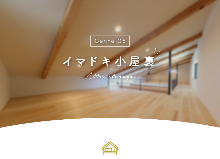 4.5帖の小屋裏は、特に子育て世帯には嬉しい大容量の収納スペースとして確保できる。2階フロアから直接アクセスできる階段は、大きい荷物や家電などの出し入れもラクに。また、格子窓をつけることで閉塞感がなくなり、下にいる家族ともコミュニケーションがとれやすくなるため、書斎など部屋としての活用の幅が広がりそう。階段に手すりを付ければ、子どもや高齢者にとっても安心安全で快適な暮らしをサポートしてくれる。