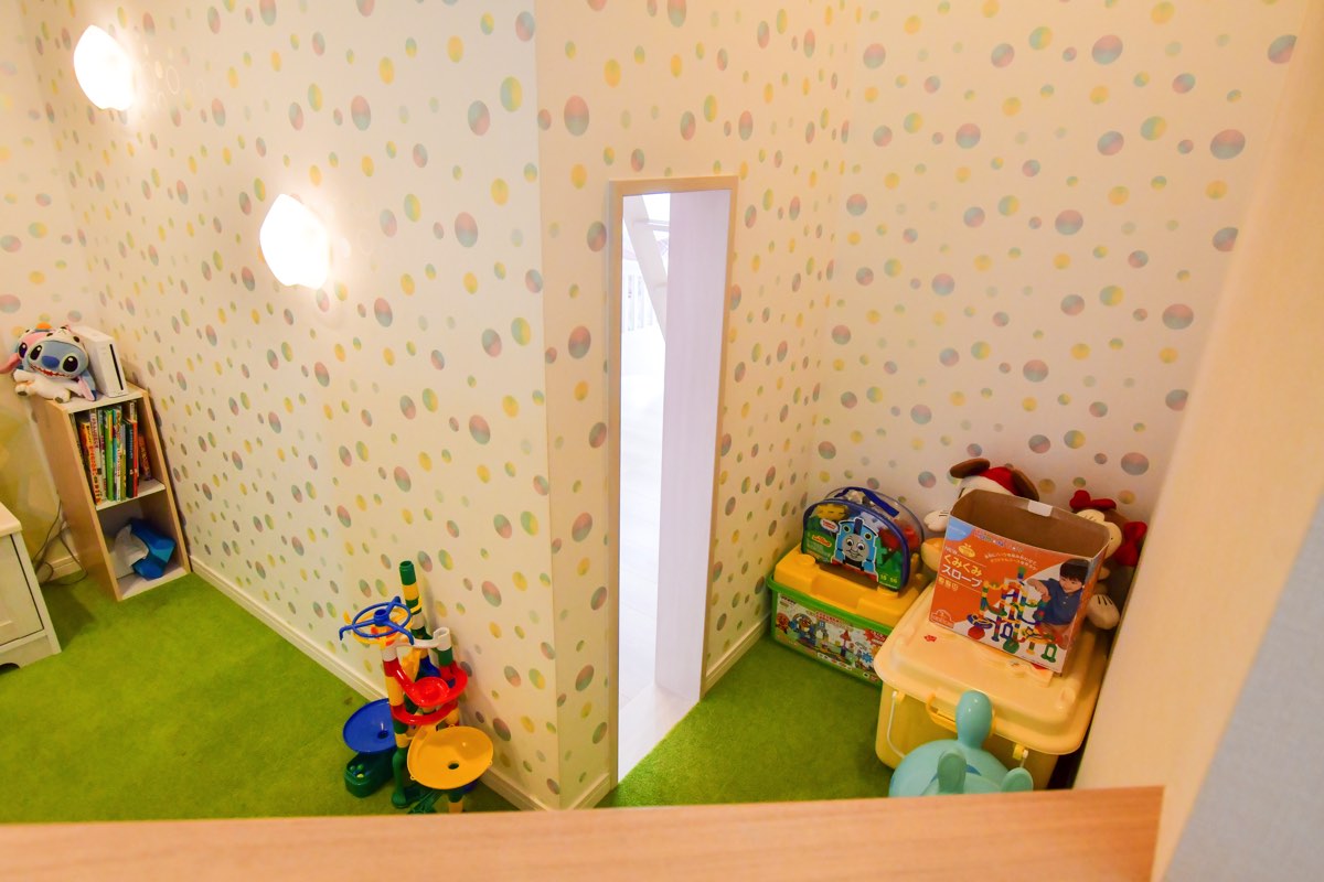 ハーフ吹き抜けやハーフ収納など、独自のアイデアいっぱいのアイ工務店の住まいづくりでは、子どもが思わず喜ぶ仕掛け満載。ロフト部分は小さなベッドルームになっていて、まるで秘密基地のような空間に。また、アイ工務店自慢の1階、スキップ収納は収納としてだけでなく「子どもがのびのび遊ぶプレイルーム」として使うことも。お友達が遊びにきたらここで子どもたちを遊ばせ、横のリビングで子どもを見ながら準備ができるのも嬉しい。