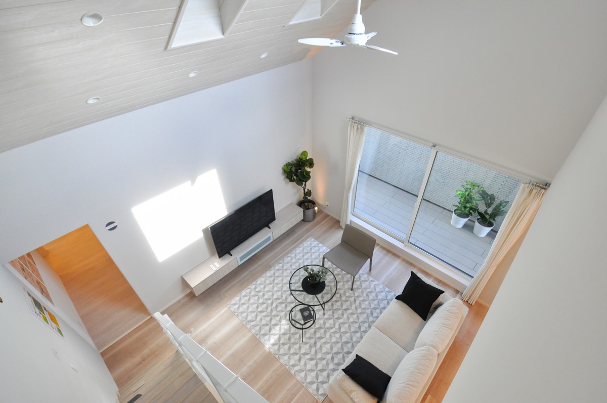 大空間の吹き抜けから降りそそぐ自然の光、開放感あふれるリビングが「スマート・ワン カスタム」最大のポイント。“Z空調”の桧家住宅だから出来る大胆な間取りで理想の住まいを現実のモノに。