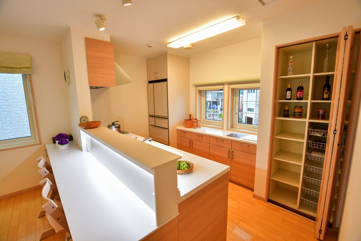 大容量収納を備えたペニンシュラ型キッチンで家事を楽に