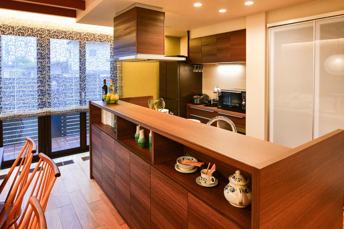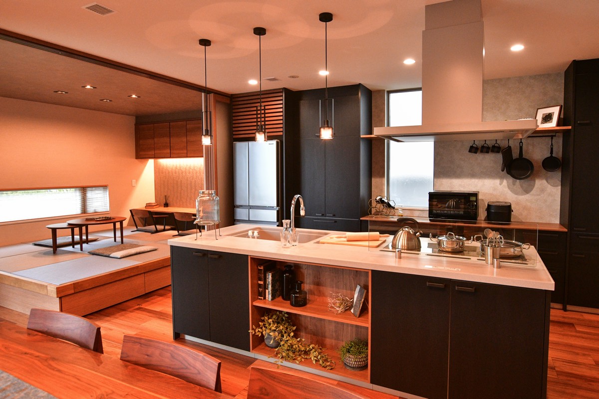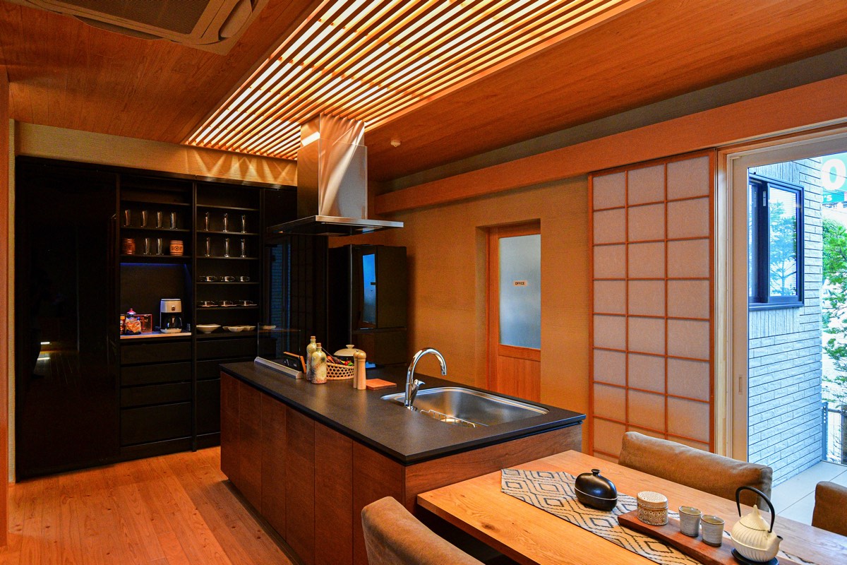 開放感のあるアイランドキッチンと、和の趣のマリアージュ