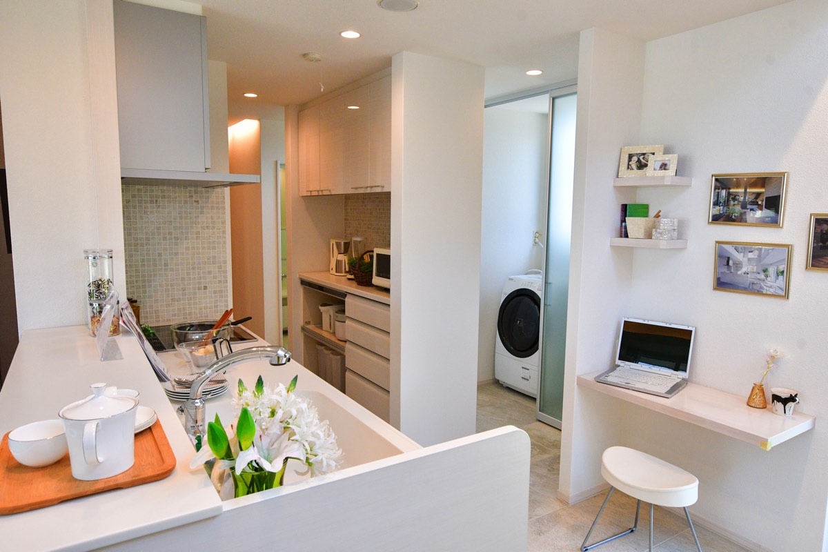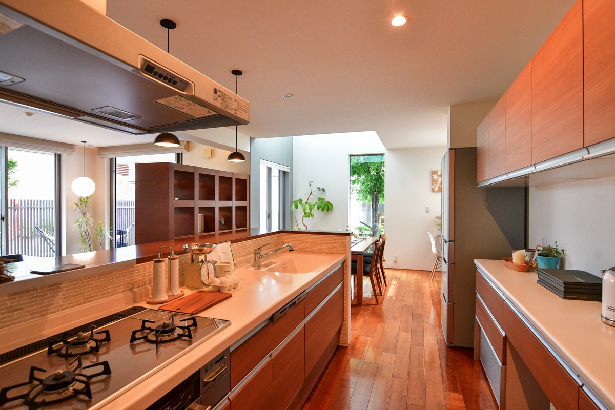 対面キッチンと家事動線の効率を考えた横並びダイニング