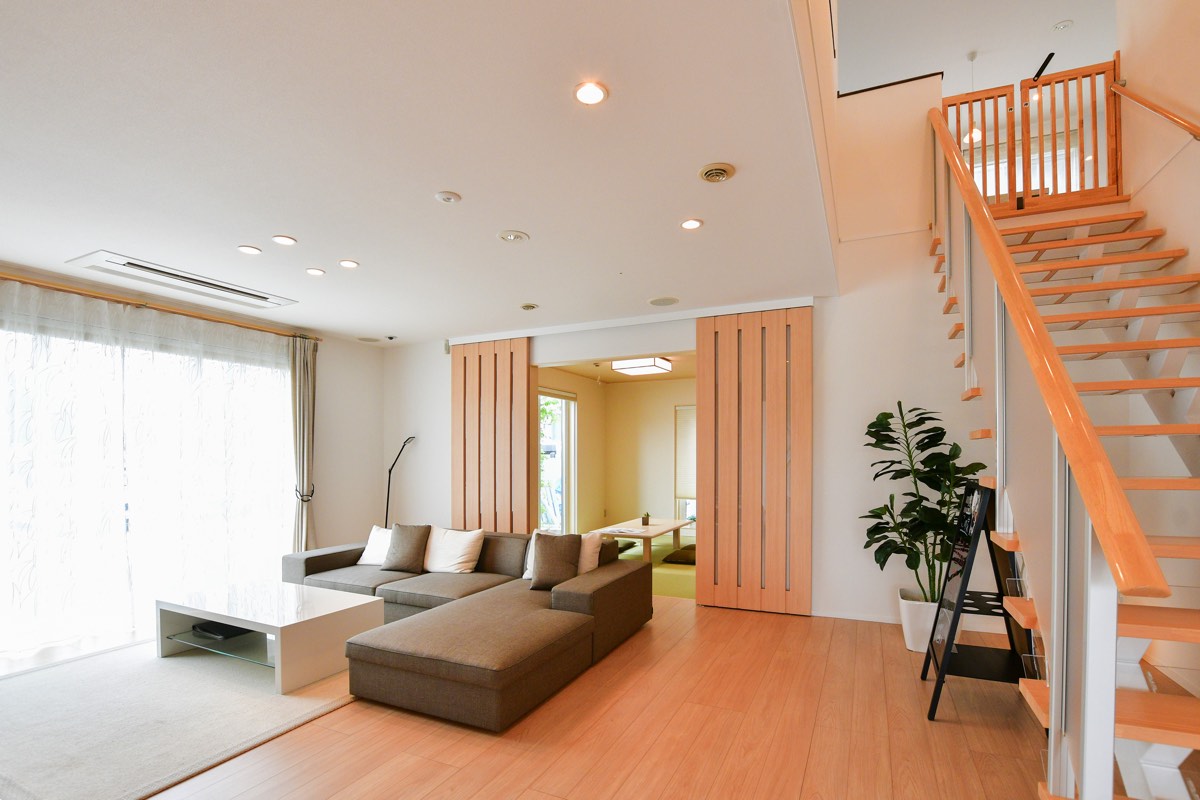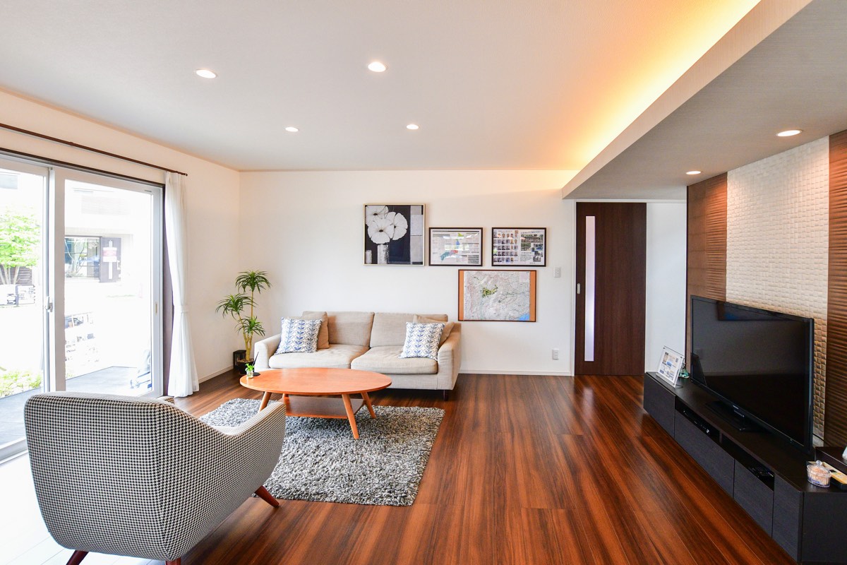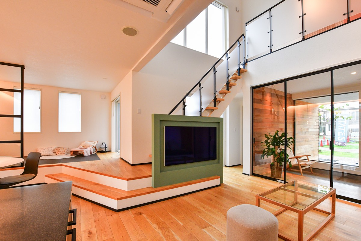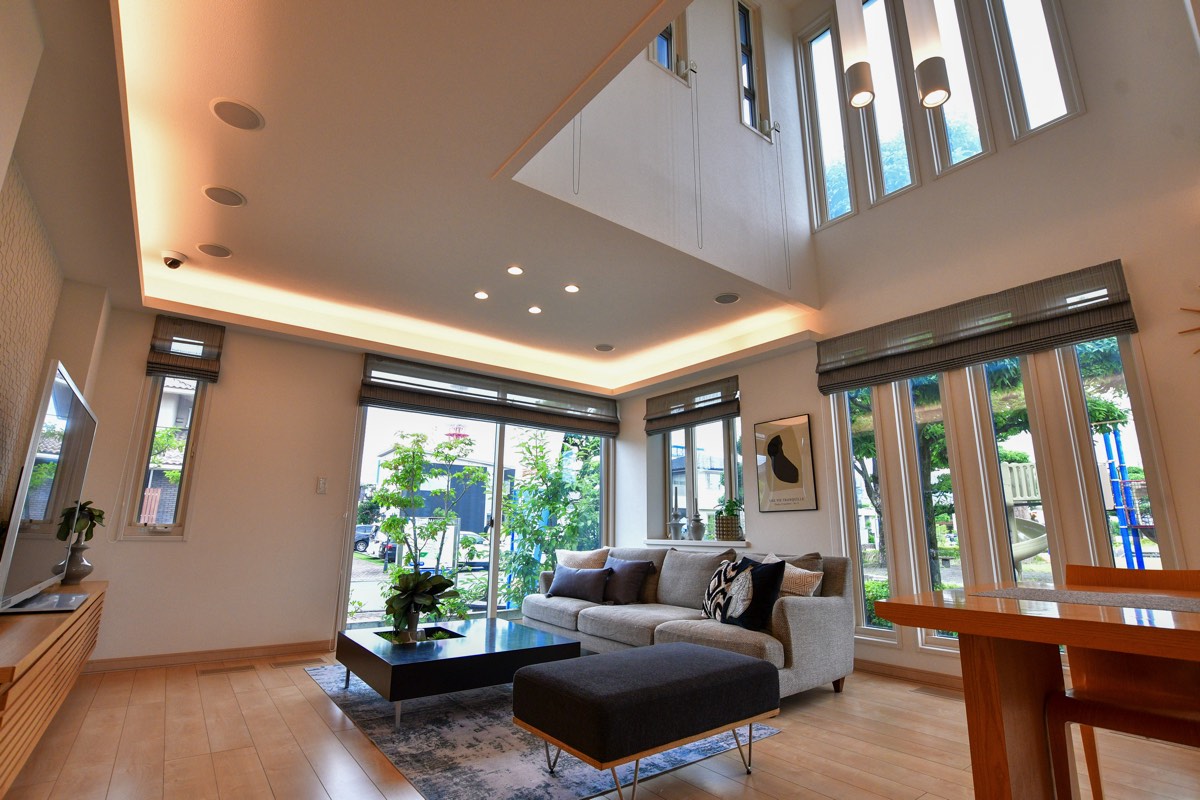 大人気の吹き抜け大空間はもちろん、明るく家族の集まる心地よいリビングをご提案。