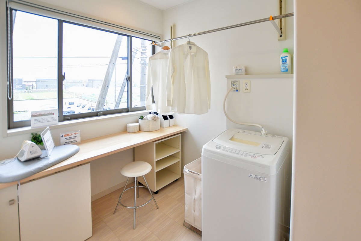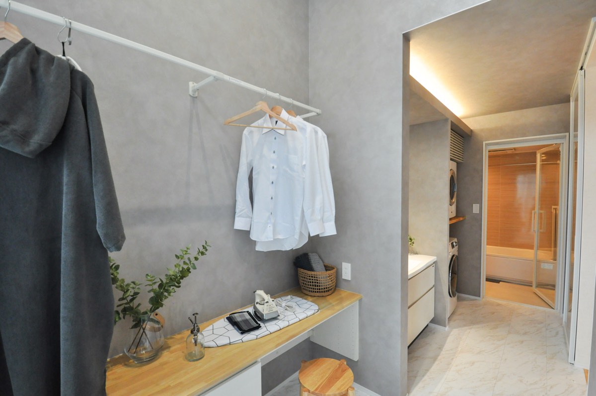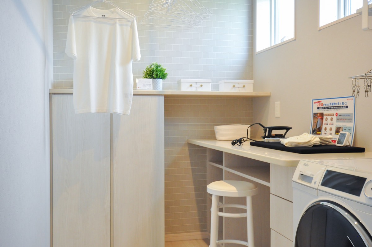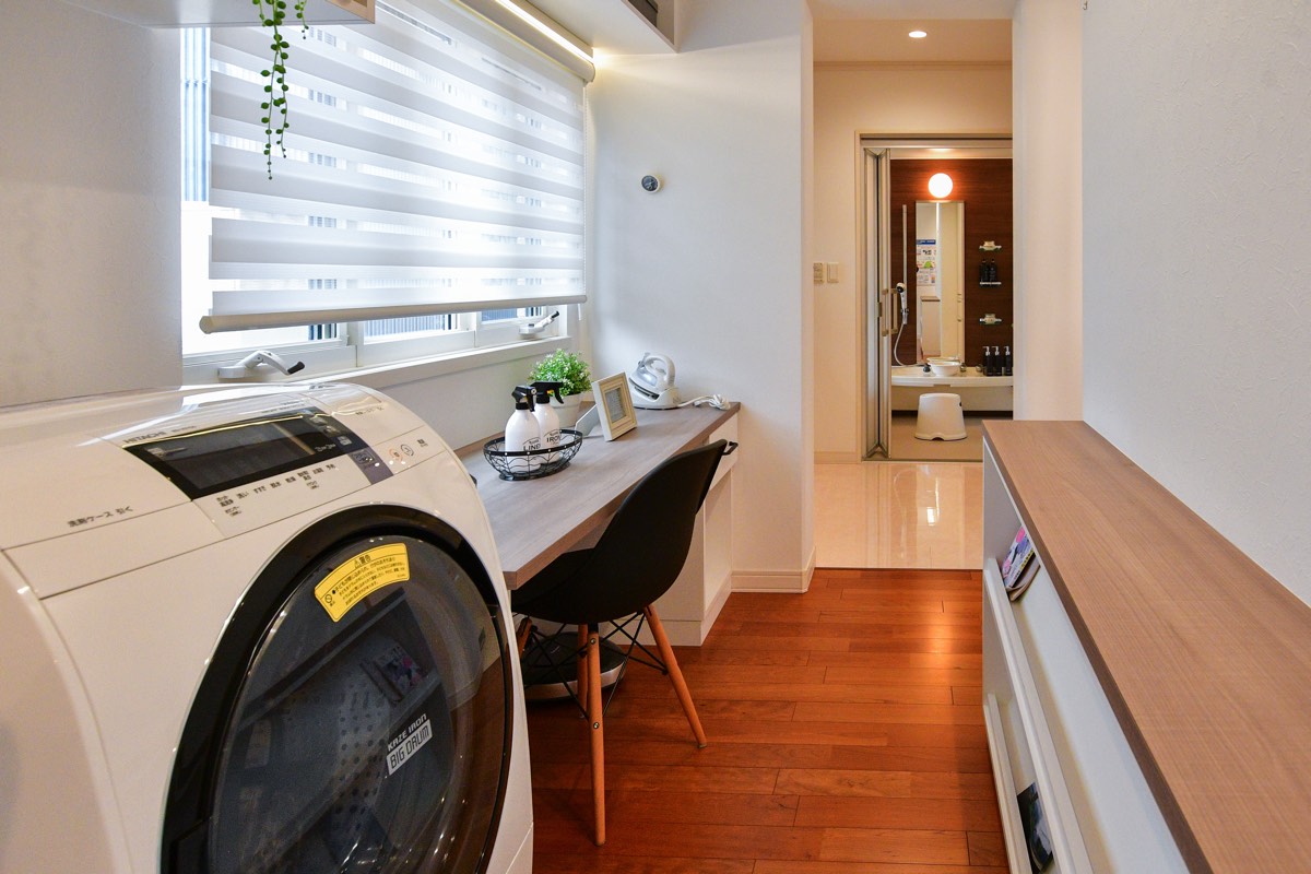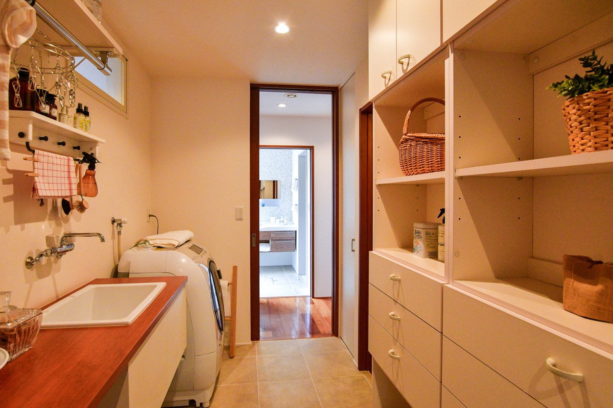 仕事や家事に追われて、家族や子供たちと触れ合う時間が減っていたら大変。洗濯機の近くにランドリールームがあったら気候や時間を気にせず、スムーズにお洗濯ができ毎日の家事がストレスフリーに。