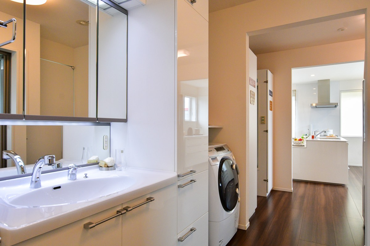 キッチンから直ぐ水回りへ!家事導線が整ったサニタリー