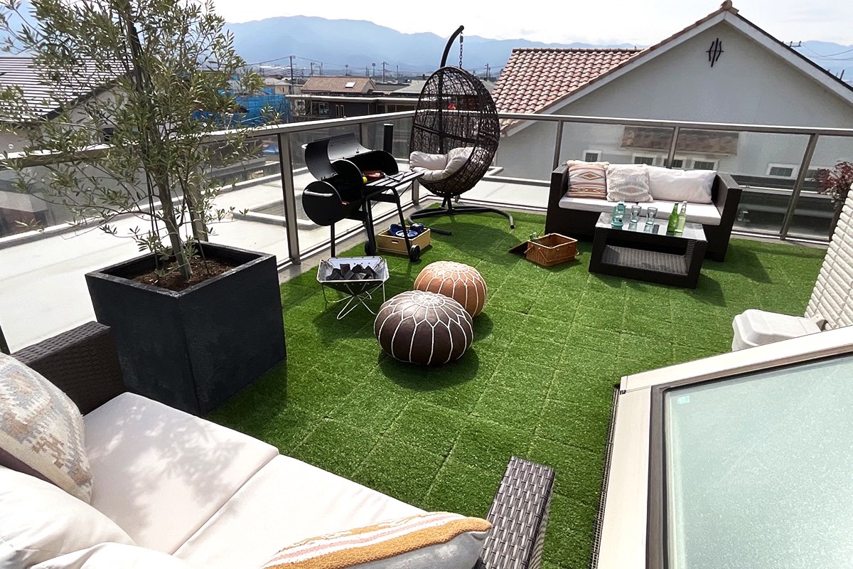 屋上は、家族のアウトドア空間。360°広がる景色、降り注ぐ陽光や爽やかな風、鳥の鳴き声が五感で感じられる。使い方も楽しみ方もアイデア次第!