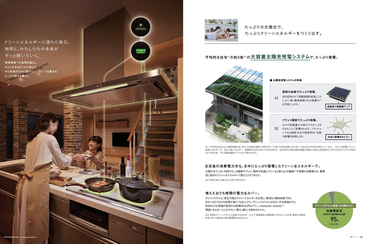 住まいの大半を工場生産することで、強さだけでなく快適な温熱環境や経年変化にも柔軟に耐えられる住まいづくりを可能に。また、創・蓄・省エネでエネルギー自給自足型の暮らしを提案。