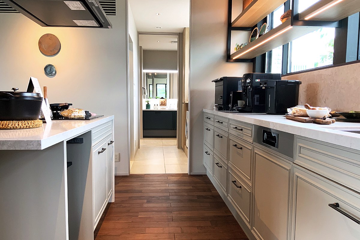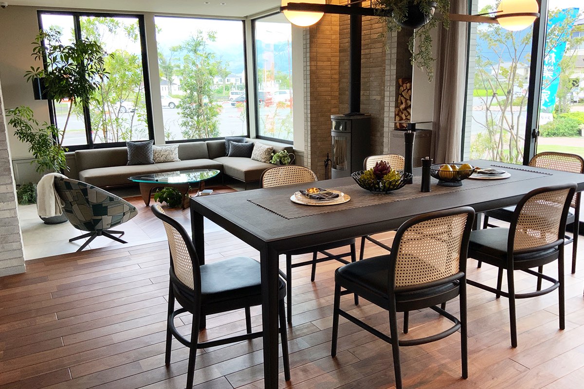 住友林業オリジナルの木質ラーメン構造を存分に活かした、大空間と大開口によるLDKは必見。カタログやインターネットでは実感できない開放感をぜひ体感あれ。