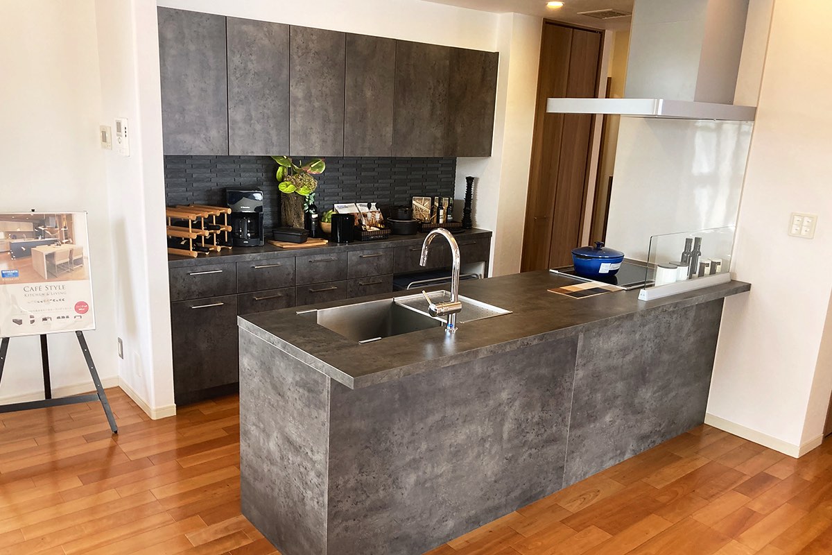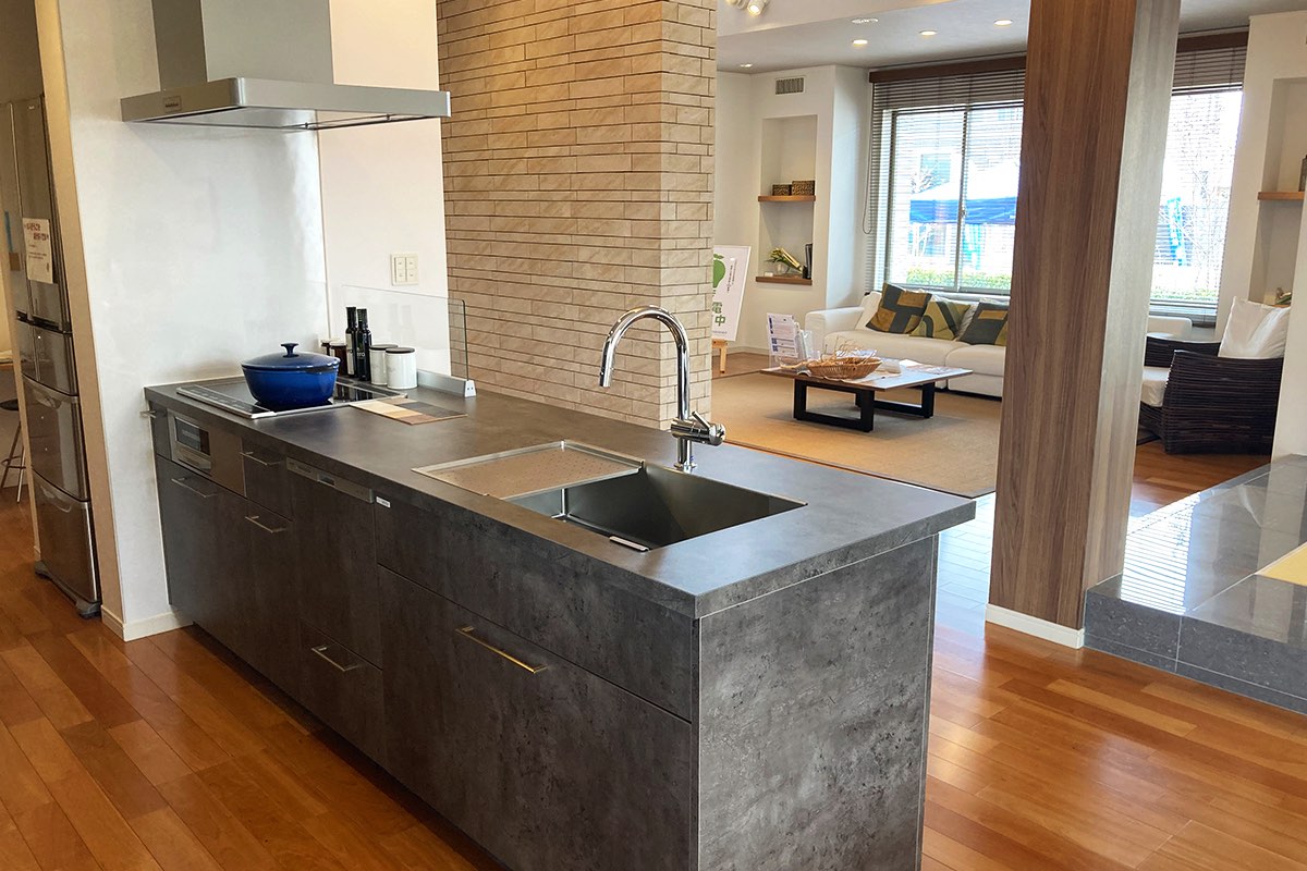 美しいデザインが特徴であるグラフテクトのキッチンを採用。オープンキッチンとして設計することでキッチンをただの調理場ではなく、魅せるインテリアとして洗練された空間を作り出している。