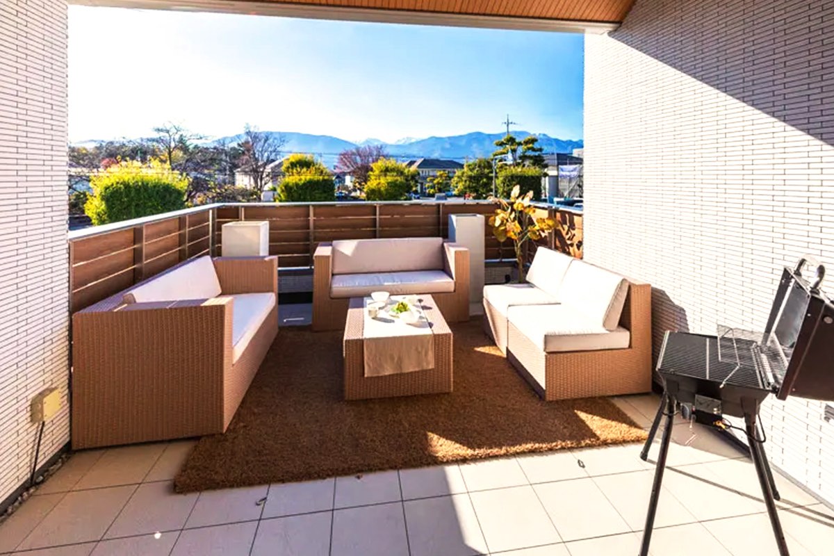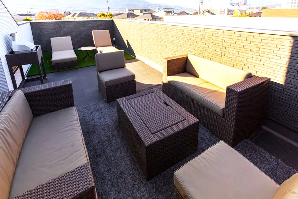 近隣の屋根の高さにある「青空リビング」は、近所の視線を気にせずBBQをしたり本を読んだり、自由に活用可能。さらに、屋上専用家具でトータルコーディネートされた空間は、家に居ながら、まるでリゾート地にいるかのよう。