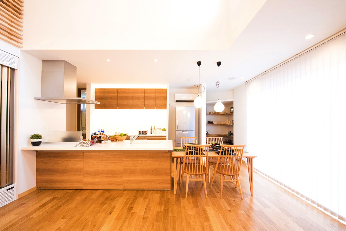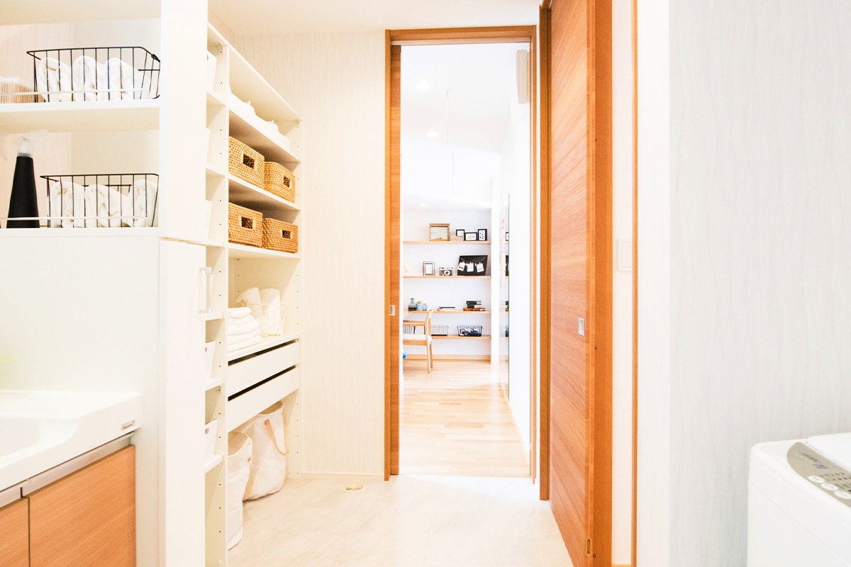 住宅性能は最高峰の断熱性能。間取りは、奥様に大人気の回遊動線を採用し、キッチンのバックヤードに収納スペースを設けることで、常に美しいリビングを。