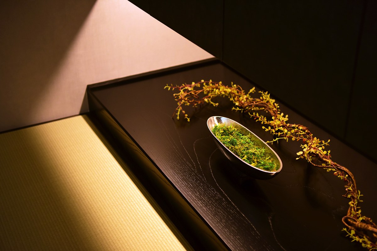 春には芽吹き始めた新緑、秋には真っ赤に色づく紅葉が美しい坪庭を眺められる落ち着いた小上がり和室は、まるで家にいながらも料亭にいるような空間を演出。
