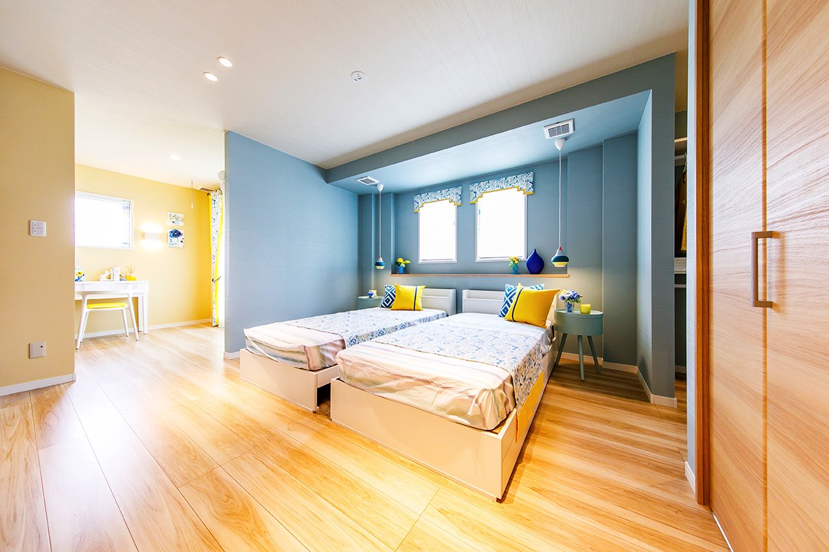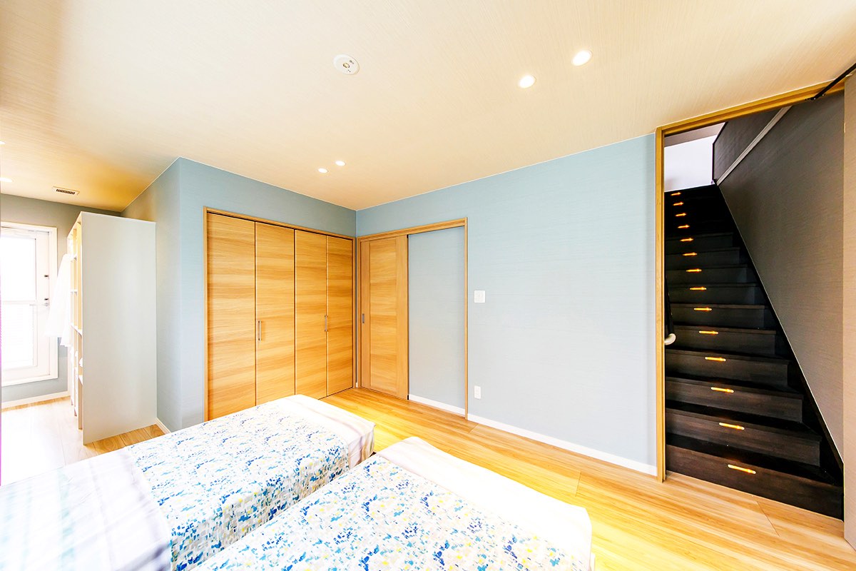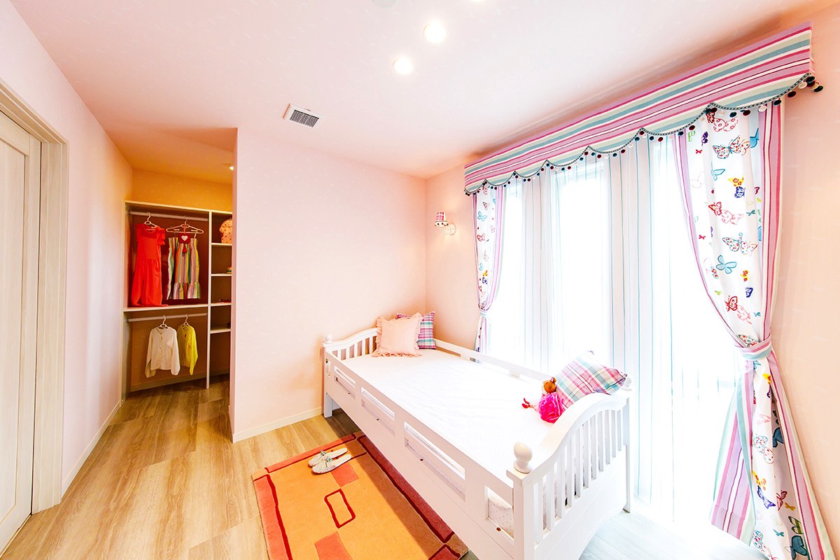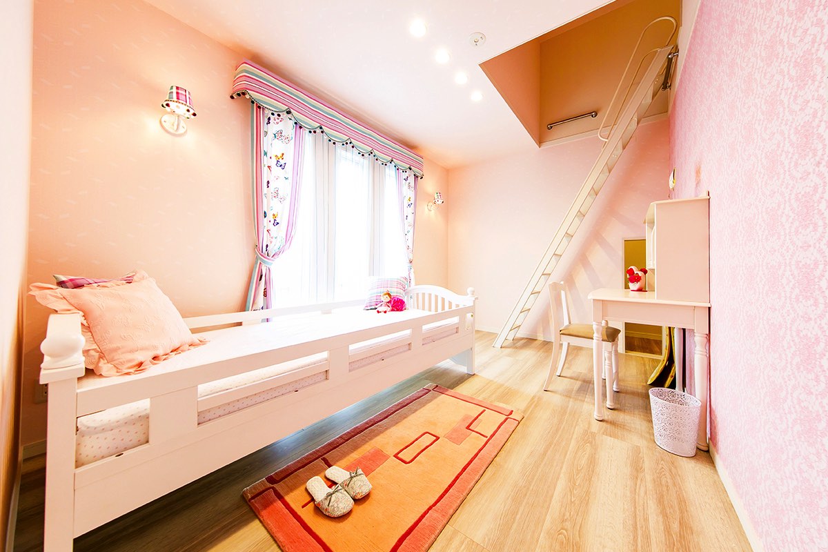 ロフト付きの子供部屋は、わくわくする空間に。ウォークインクローゼットで十分な収納を確保し、成長に応じて増える生活用品の悩みをクリアにしてくれる。