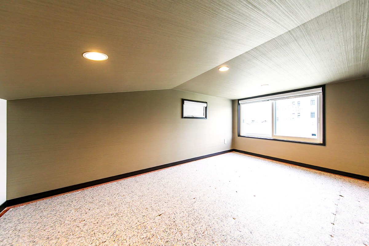 このモデルハウスには秘密部屋が。それは主寝からの秘密扉を開け階段を登ったところにある屋根裏部屋。パパの趣味部屋として、またはプロジェクター設置し家族みんなで楽しむシアタールームとして利用可能。