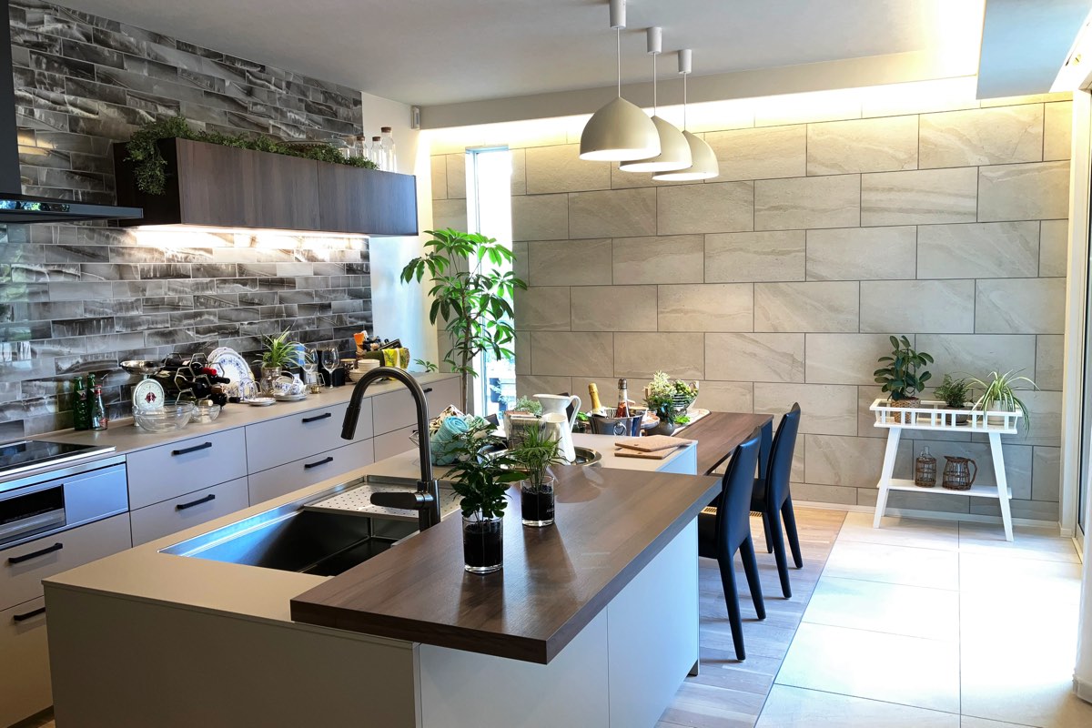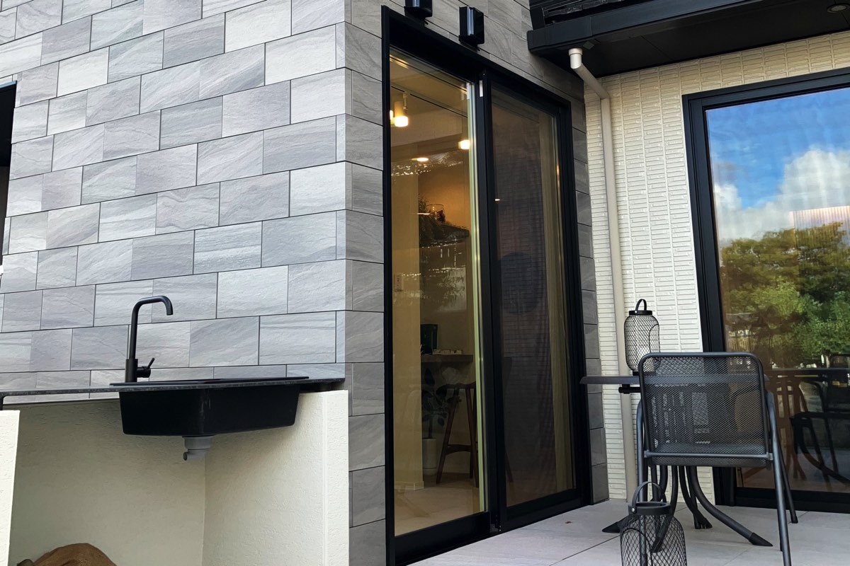 外壁には美しい大判タイルを使用。タイルの高級感と耐久性により、長い年月を経ても美しさを保ち続ける。また、全館空調システムにより、季節や気候の変化に左右されることなく、一年中心地よい空間に。