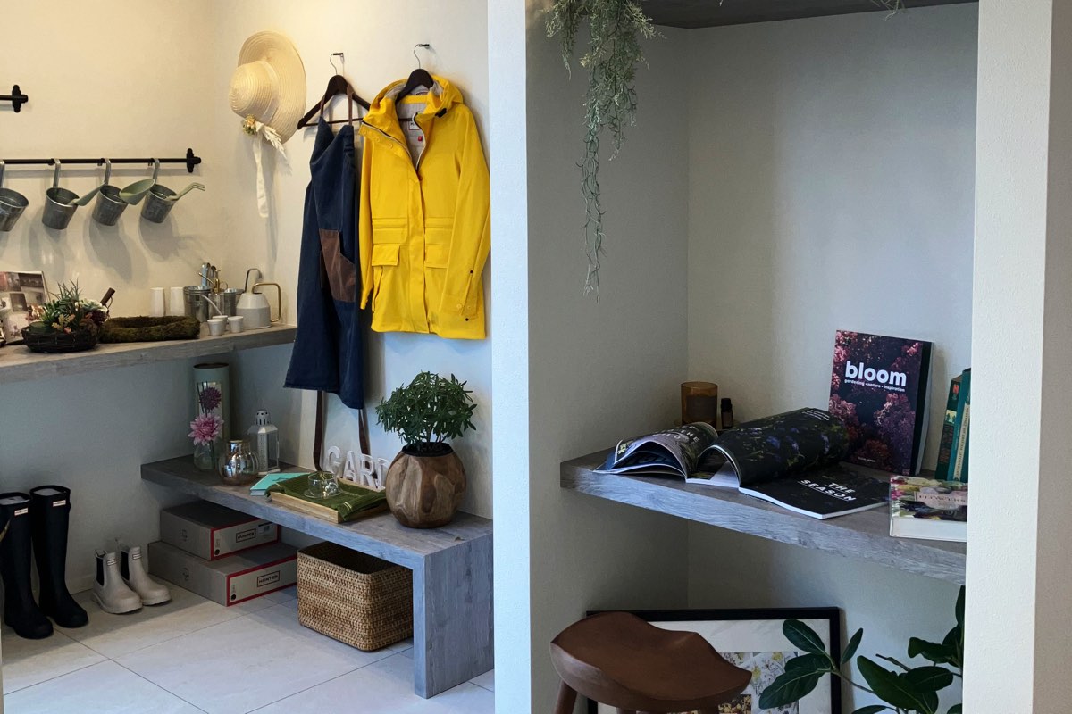 趣味のガーデニングやフラワーアレンジメントを楽しむために、TATAKIやガーデンテラスと一体のアトリエを配置。過ごし方を考慮した一工夫で、お家時間をさらに楽しく。