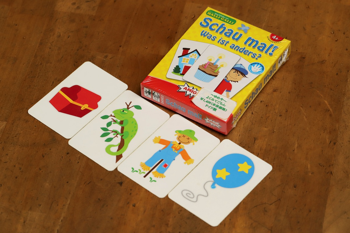 両面に“ちょっとだけ違う”イラストが描かれたカード。場に並べられたカードの絵柄をよく覚えたら、1人が出題者となって全員が目をつぶっている間に1枚を反転。どれが変化したか見つけられるかな?