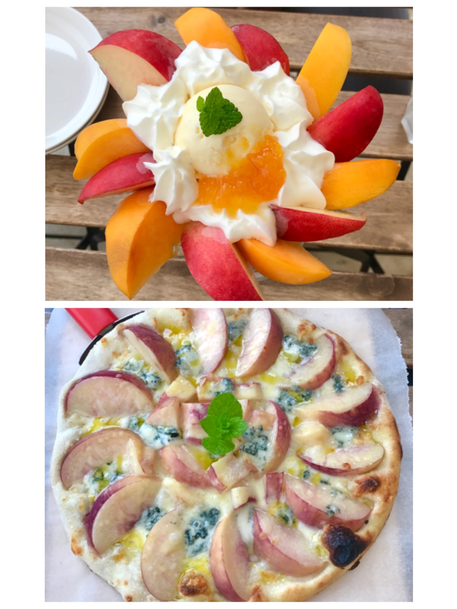 パフェとピザと、写真はありませんがスムージーをいただきました。まさに桃三昧! ゴルゴンゾーラ×桃と...