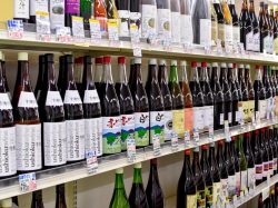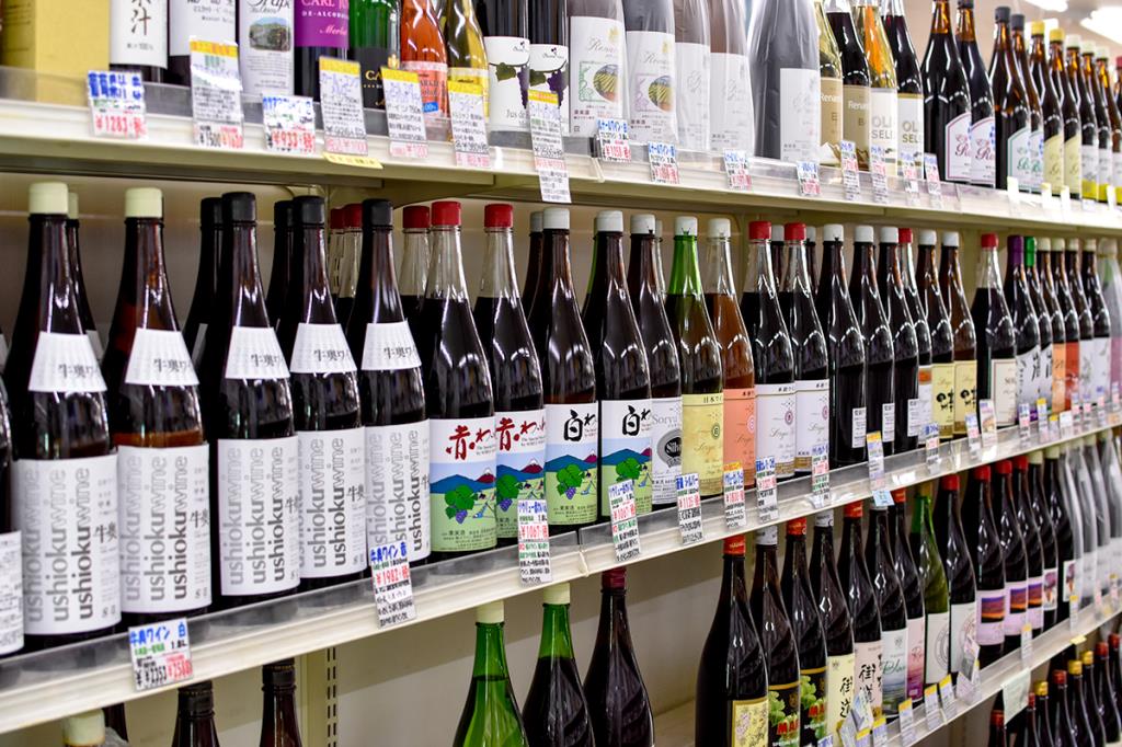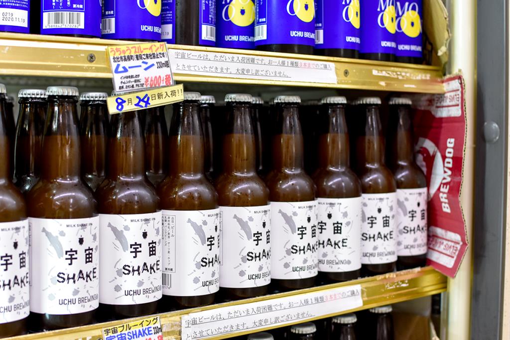 店内には様々な種類の酒が並んでおり、初めて訪れた際にはその種類の豊富さに圧巻させられること間違いなし。特に山梨ではおなじみの一升瓶ワインに関しては約160アイテム、また近年注目されているクラフトビールも、県内醸造所の宇宙ブル―イングを始めアウトサイダーブルーイングなども取り揃えている。