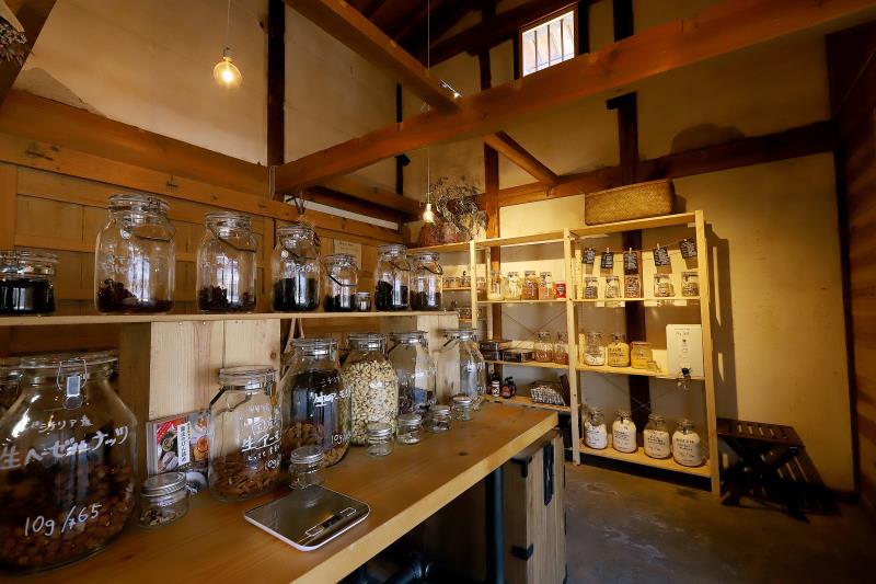 築102年の蔵を改装した店内には、玄米、調味料、パスタ、ドライフルーツなど、オーナー自らが厳選した高品質の商品が並ぶ。