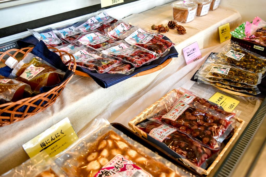 店内には喫茶コーナーもあり、コーヒーや梅・あんずジュース、夏季にはかき氷を用意しており、のんびり過ごすことができる。