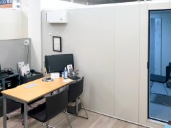 県内では唯一こちらの店舗で取り扱っているシークレットレメディー他、数多くの眼鏡が並ぶ。また、補聴器にも力を入れており、より詳しい聴こえの確認ができるよう大きな防音室を完備。