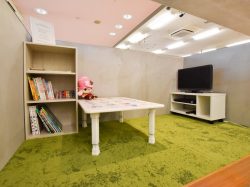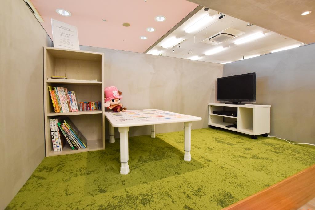 グレーを基調としたスタイリッシュな内装、キッズスペース完備で子連れでもゆっくりと買い物ができる。