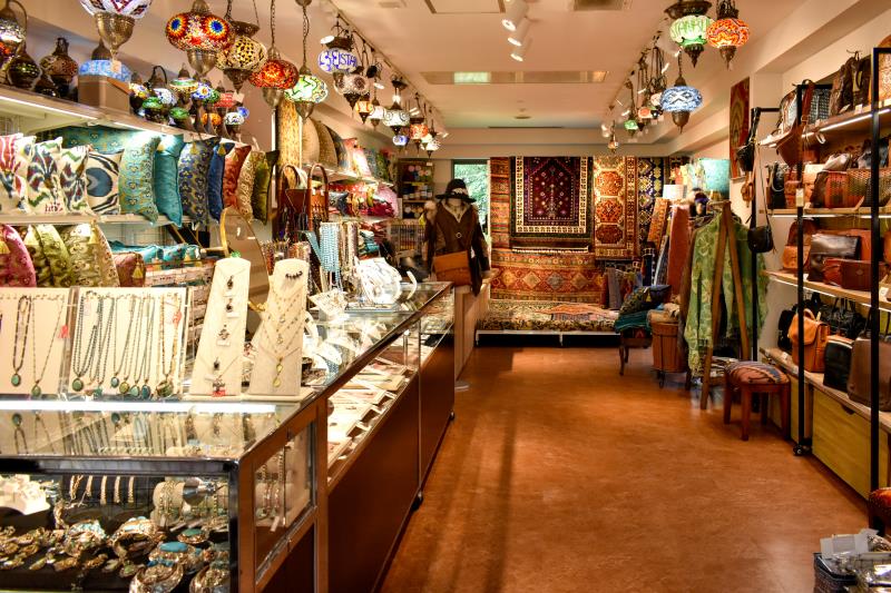 まるでトルコのバザールに足を踏み入れたような異国情緒溢れる空間で、お気に入りのアイテムを探してみては。