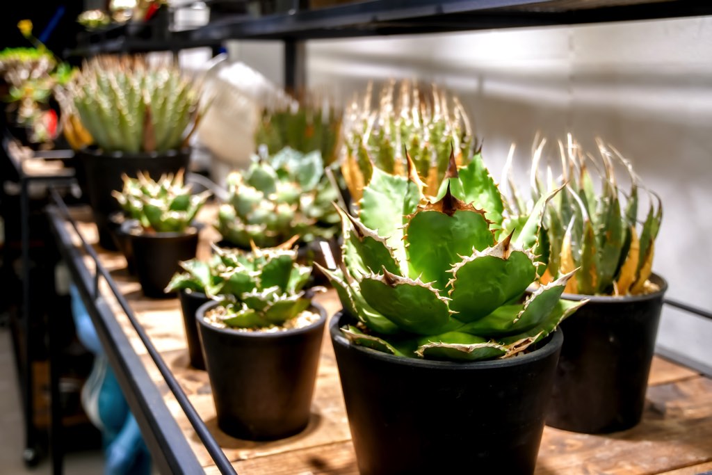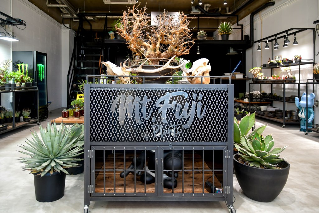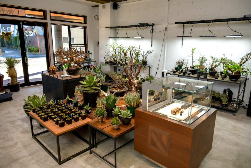 黒を基調にしたスタイリッシュな店構えと、こだわりのライティングがおしゃれなセレクトショップのようだが、こちら多肉植物の専門店。