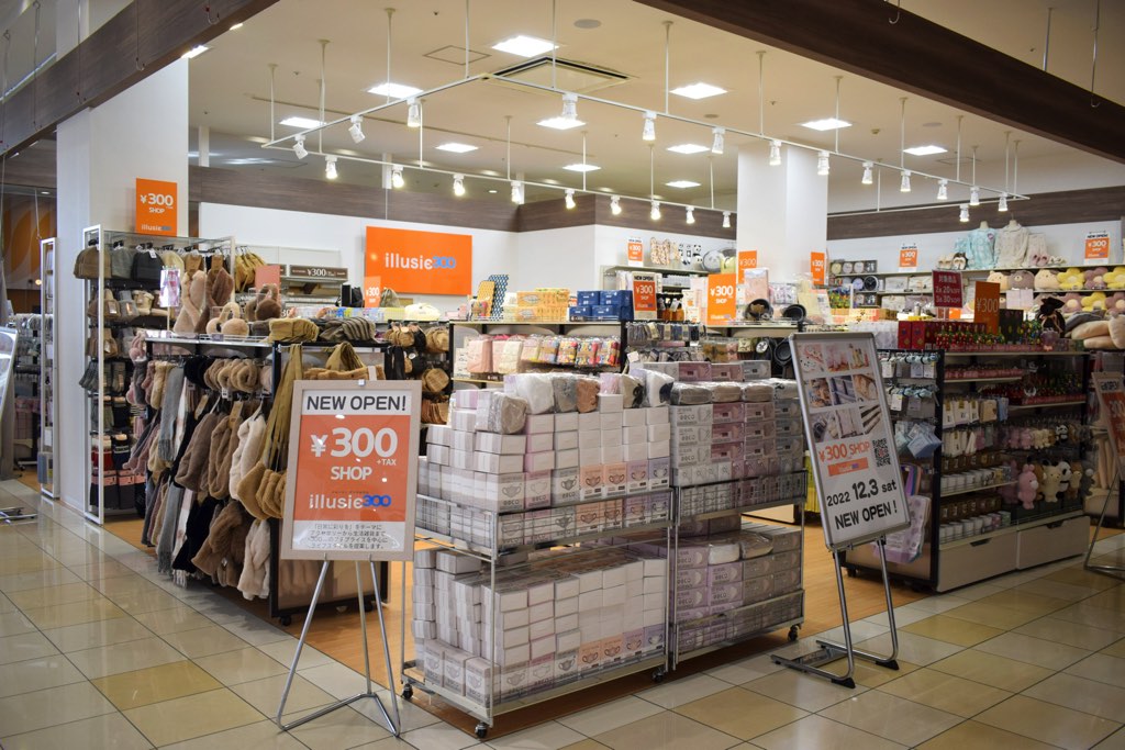 ラザウォーク甲斐双葉店1階にある山梨初出店の300均一「illusie300(イルーシー)」。