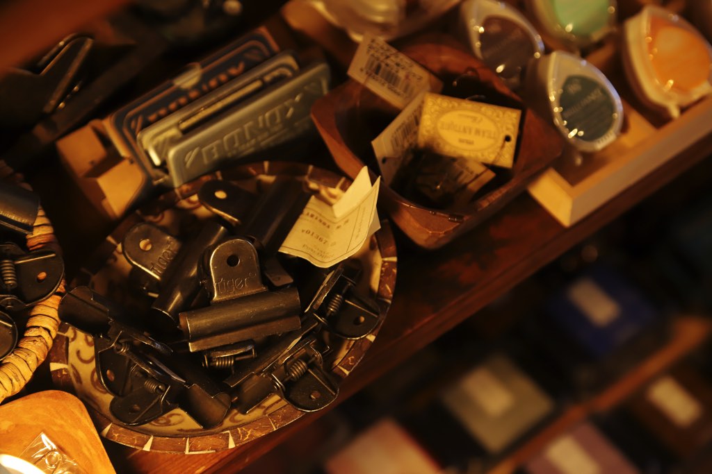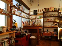 コラージュに使いたいかわいい紙類や文房具、さまざまな大きさのあみカゴ、県内クラフト作家さんのアクセサリーなどが並ぶ。店内のアイテムはオーナーが一つひとつ選び抜いたこだわりの雑貨たちで、なるべく他店にはないオリジナルのものをセレクトしている。