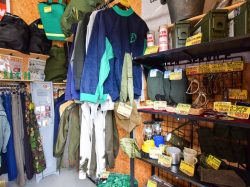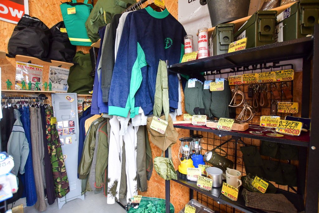 古着やアメリカ雑貨などの商品はオーナーの目に叶ったモノを輸入し店頭に並べており、ミリタリー商品はアパレル・小物を中心に揃えている。