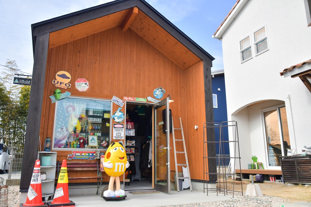 笛吹市一宮町にある「kichi」。アメリカン雑貨・TOYを中心にミリタリー商品なども扱う雑貨屋さん。名前の通り「基地」感満載な店舗は所狭しと商品が並ぶ。
