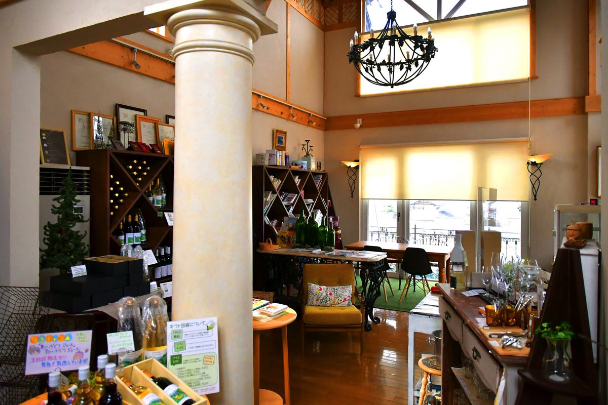 ワインや無添加果汁などの自社製造品、ワイン関連雑貨などを販売している。