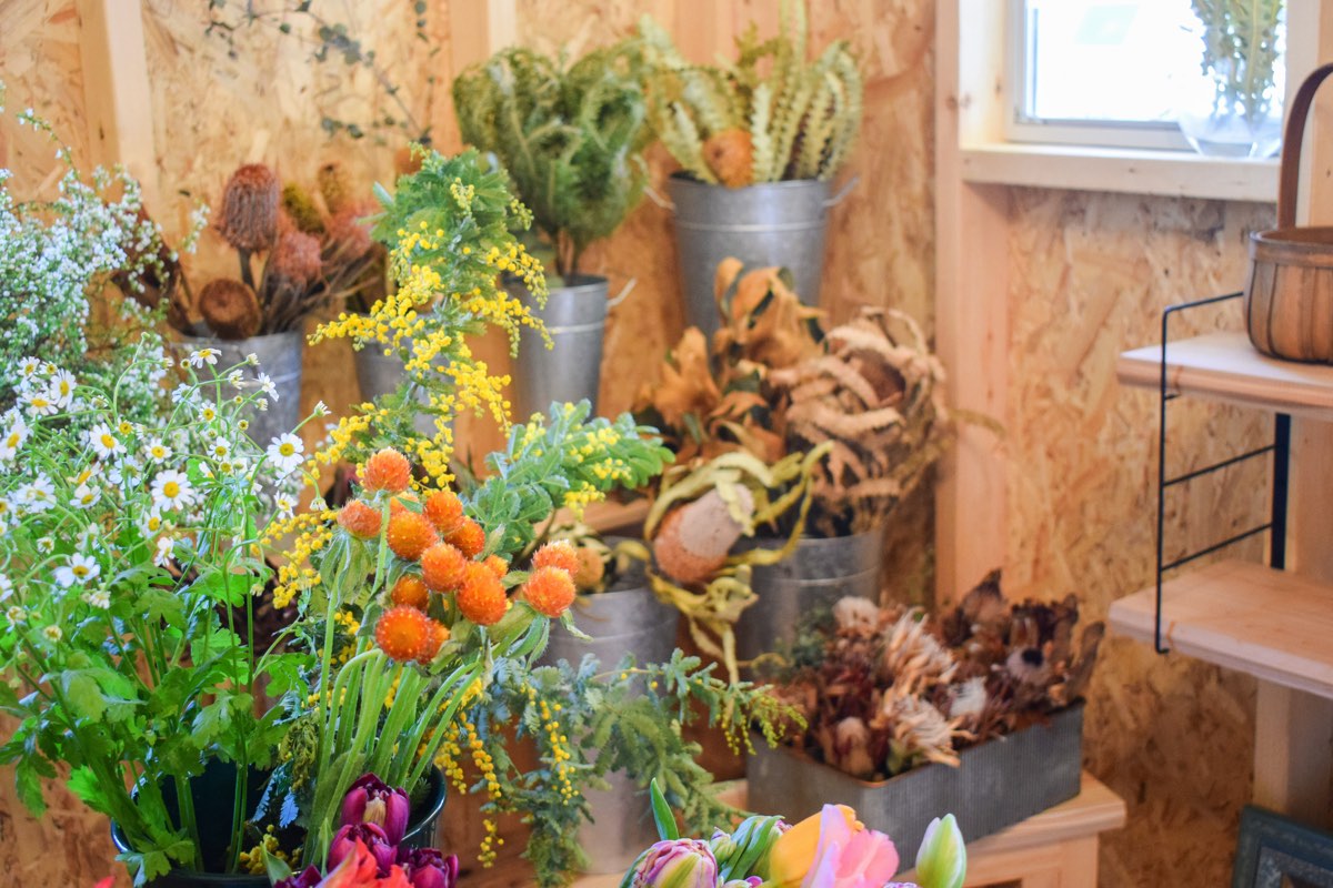 人気のプロテアやミモザ、アンスリュームなどのネイティブフラワーや季節のお花が勢揃い。