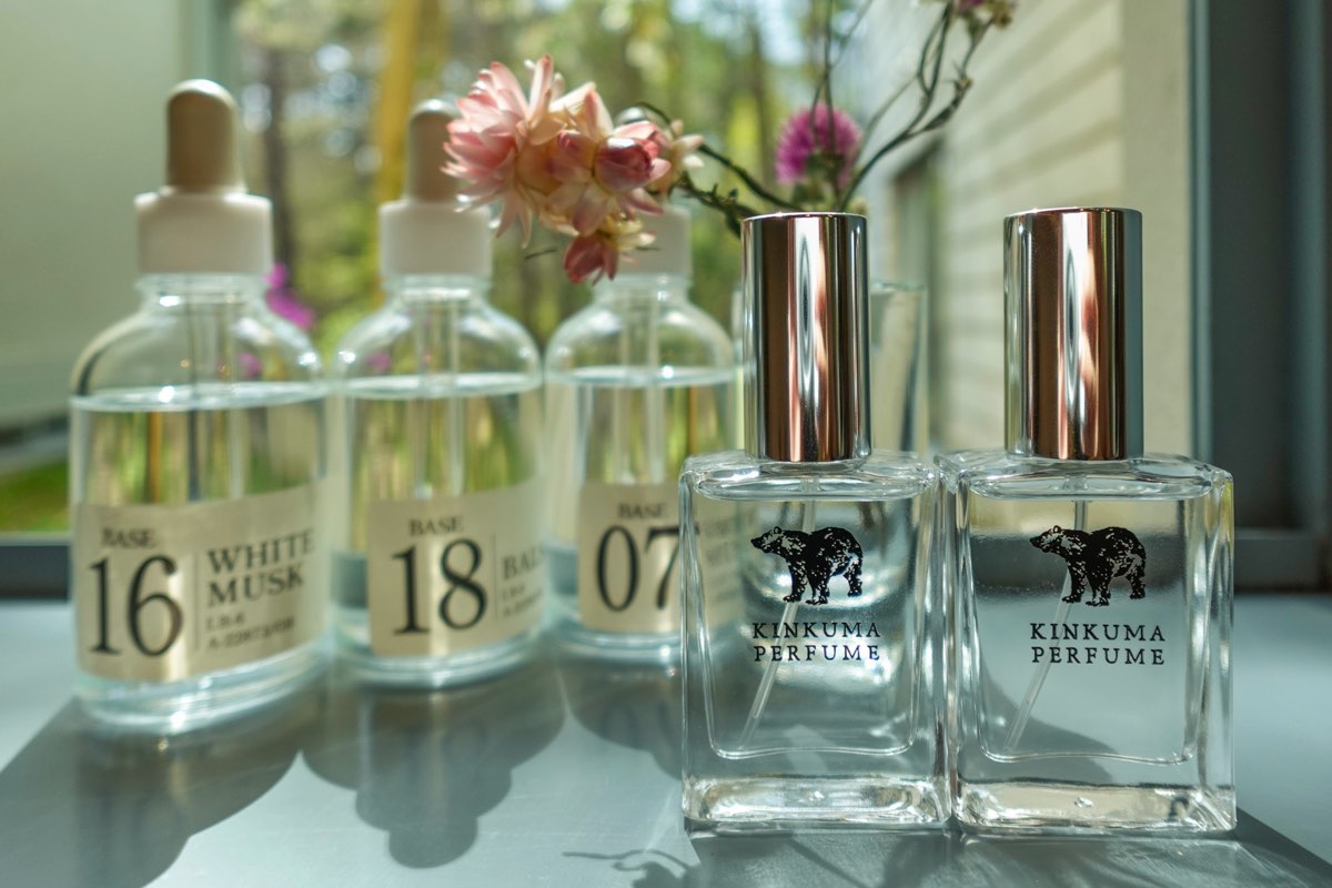 販売されている香水の他にも、全18種類の香り「金熊ベース」から、自分好みの香りに調合できる香水づくり体験も。あなただけの「じぶんのかおり」を見つけてみては。