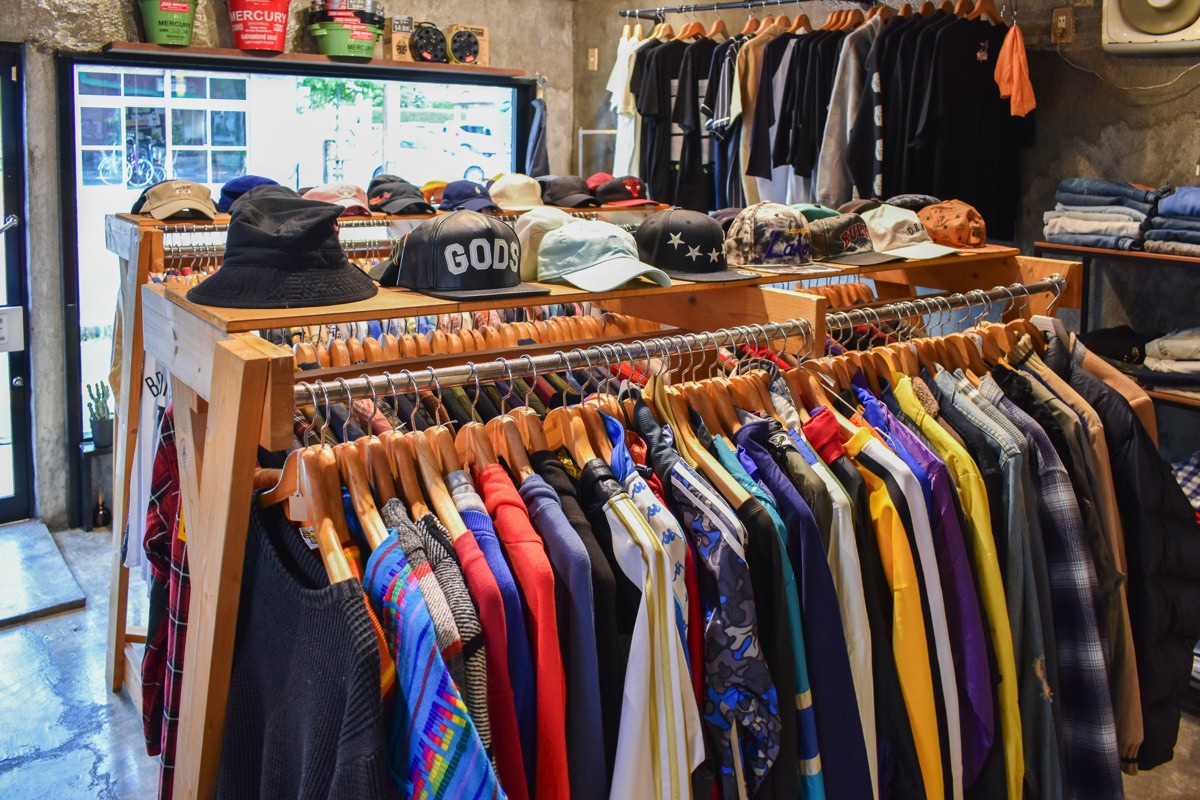 甲府の湯村にオープンした古着屋「PICREWS」。80s~00sストリートを中心にセレクトされた店主こだわりの古着や雑貨が取り揃えられている。