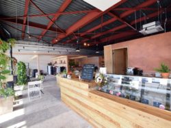 併設のカフェではラペスカのジェラート、葡萄屋KOFUのレーズンサンド、増田珈琲のコーヒーなどがいただける。