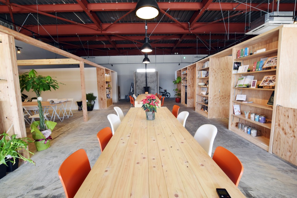 studio pelletは、山梨での生活を豊かにするような商品・サービスを提供する企業がひとつの場をシェアして、カフェ、ショールーム、オフィスとして運営する複合施設。会議や展示会でレンタルスペースとしても使用可能。