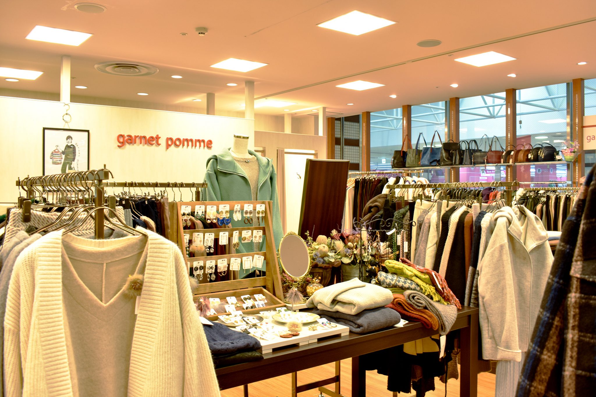 河口湖ショッピングセンターBELL3Fにある「garnet pomme」は、オーナー自らが商品の買い付けや輸入を行いセンス光るアイテムが揃うセレクトショップ。