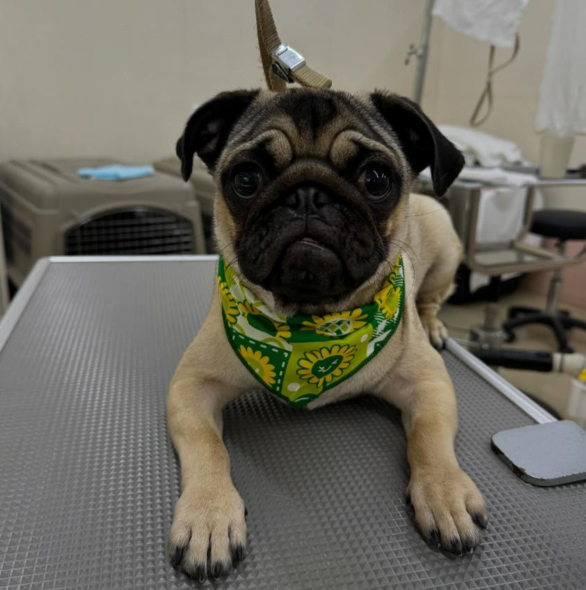 いつもご利用ありがとうございます😊 パグのぽんずくんです🐶💓 シャンプーまでは大丈夫だったのにドライから切なく鳴き始めたぽんずくん🥺🤍 最後までよく頑張りました👏💮 またお待ちして...