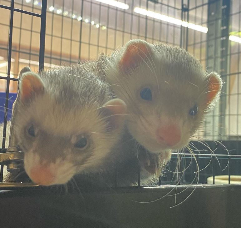 ゲージを開けると寝てても「ご飯ー!!」って元気に寄ってきてくれる食いしん坊二人組カナディアンフェレットちゃんです🥰