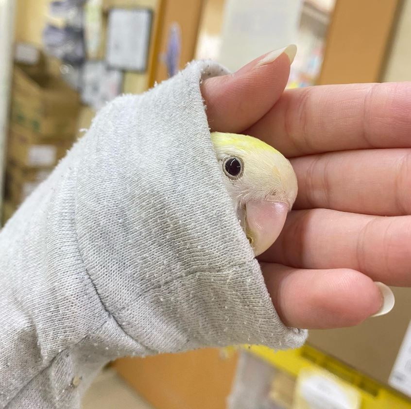 スタッフのお手手の中がだいすきな甘えん坊コザクラインコちゃんです🥰