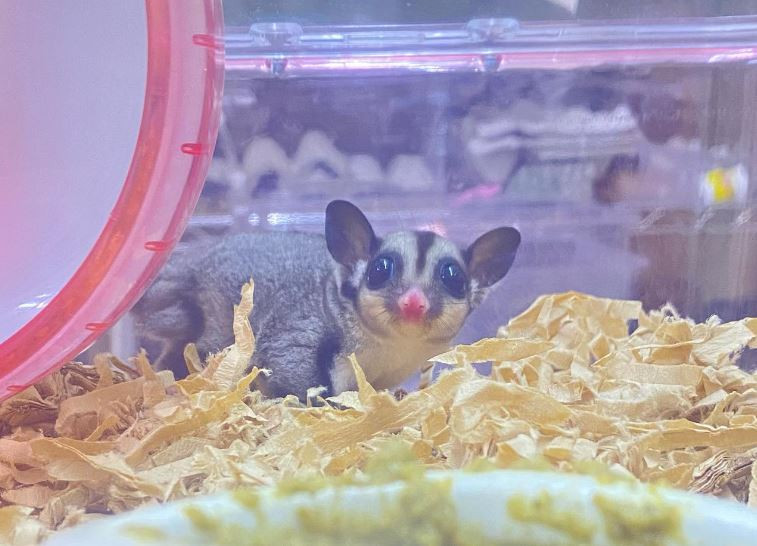 お店に来たばかりなのでそーっと撮ったフクロモモンガちゃん