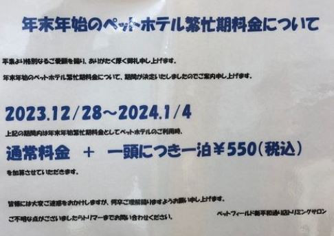 ≪年末年始のペットホテル≫