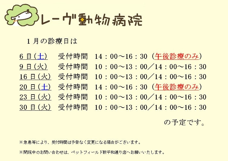 1月の診療日スケジュールです。 -
