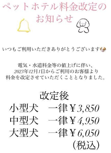 ≪ペットホテル料金改定のお知らせ≫