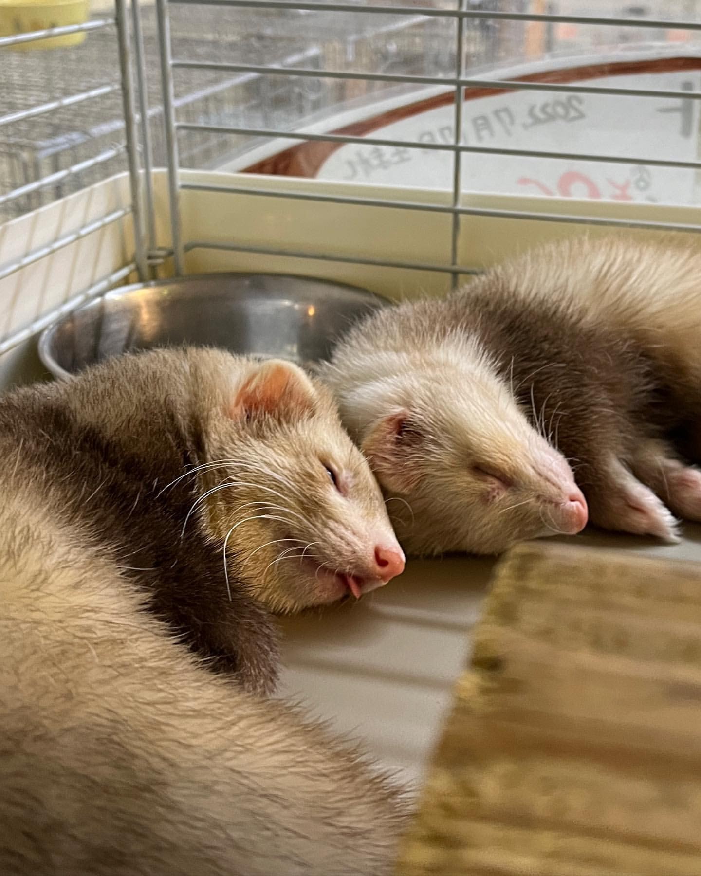 ベロを出しっぱなしでスヤスヤフェレットちゃんズ