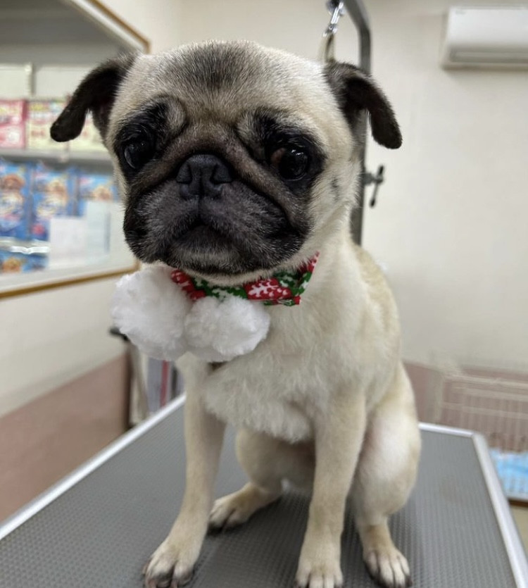 いつもご利用ありがとうございます😊 パグのおいちちゃんです🐶💓 after グルーミングコースをご利用いただきました🫧 マフラーが似合ってて可愛い🤤❤️ 写真が困ってるみたいに撮れて...